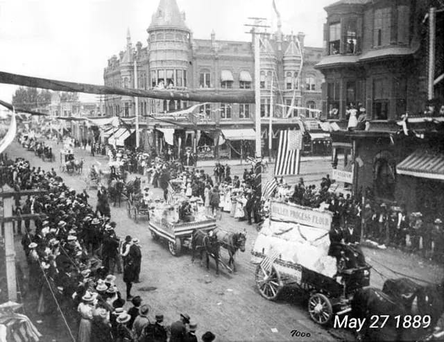 Parade for the arrival of the San Joaquin Valley Railroad. Chester Ave. Bakersfield 5-27-1898*
